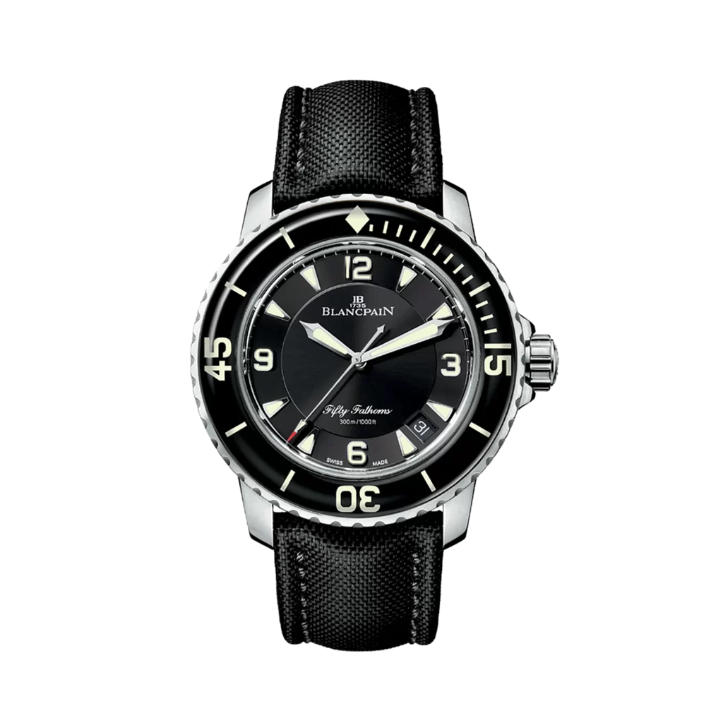 Made with Grade 23 titanium, the Fifty Fathoms Tech is both strong and light. This makes it great to use in rough underwater places. Titanium does not rust, so the watch can last for a long time, even in salty water.