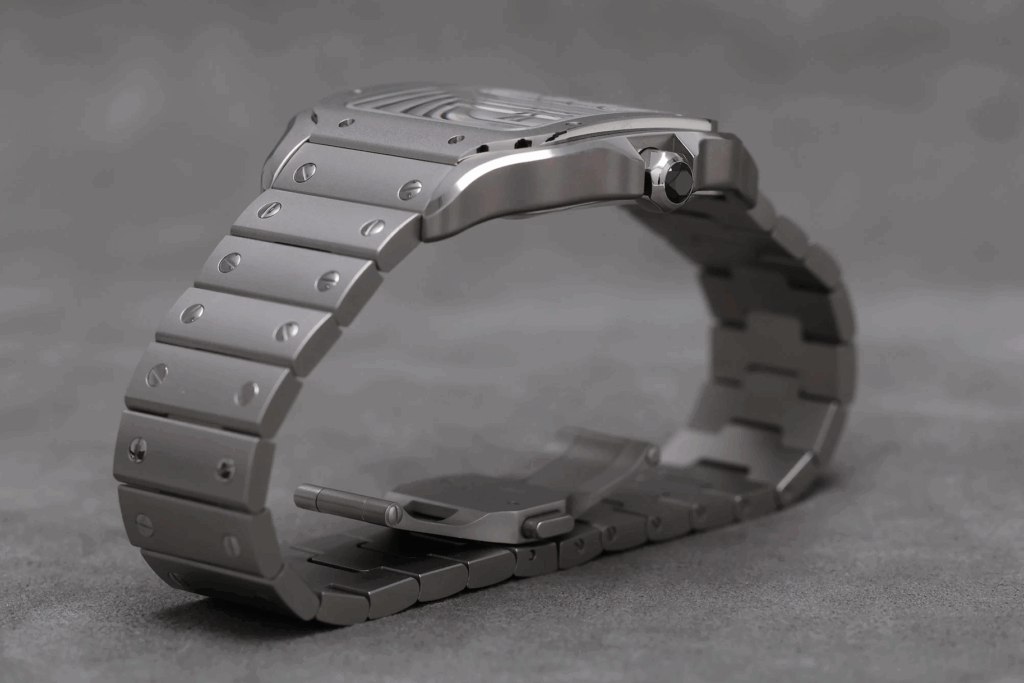 The choice of titanium for the new Santos has a profound effect on its wearability. The titanium case is made from Grade 5 titanium, an alloy that is 43% lighter than stainless steel. This significant reduction in weight means the watch feels incredibly comfortable on your wrist, even with its large case size and integrated bracelet. You get the presence of a substantial watch without the heft.