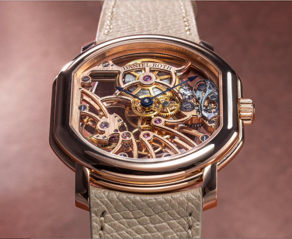 - The Daniel Roth brand, revitalized by La Fabrique du Temps, introduces the Extra Plat Rose Gold Skeleton, a completely new model.